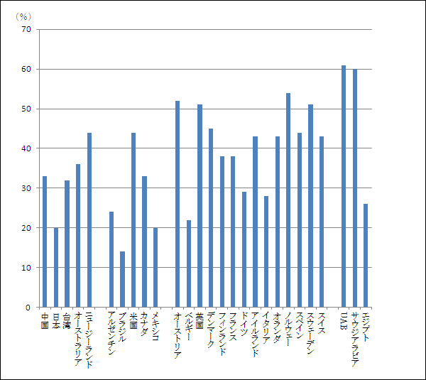 世界各国のスマートフォン普及率(2012年末)